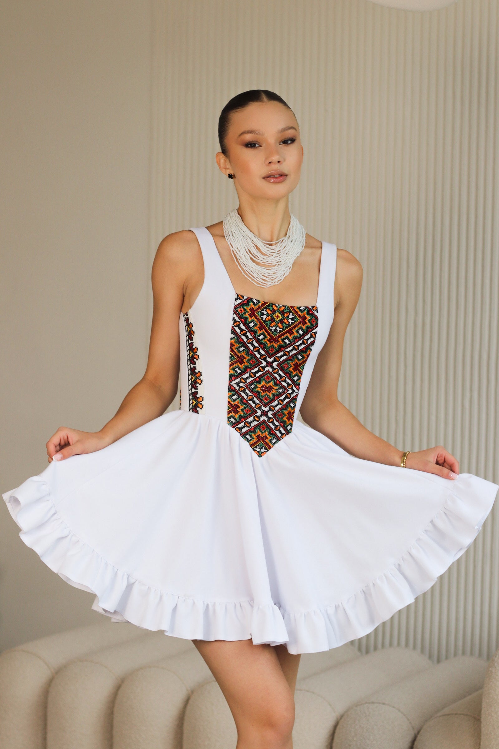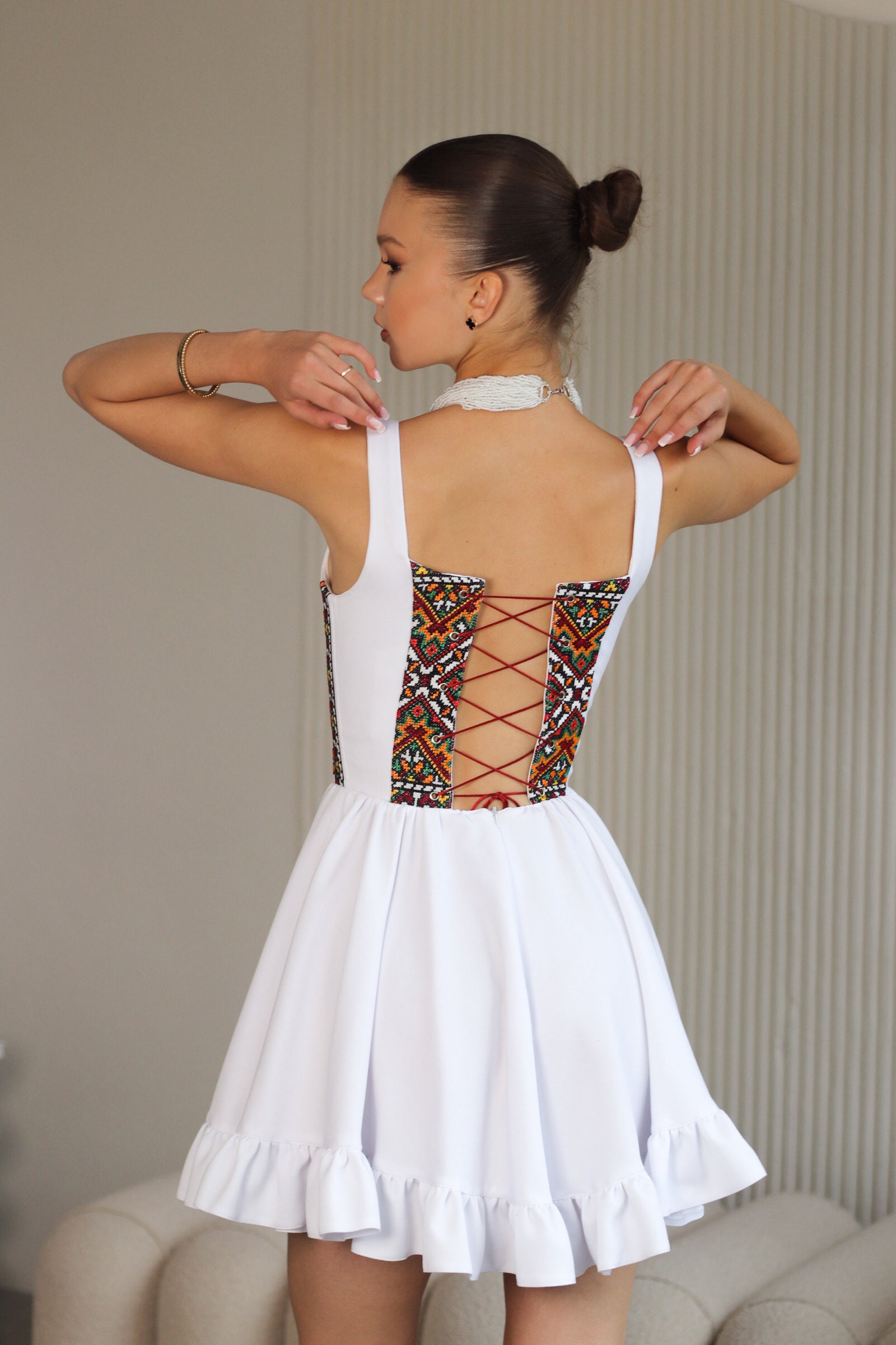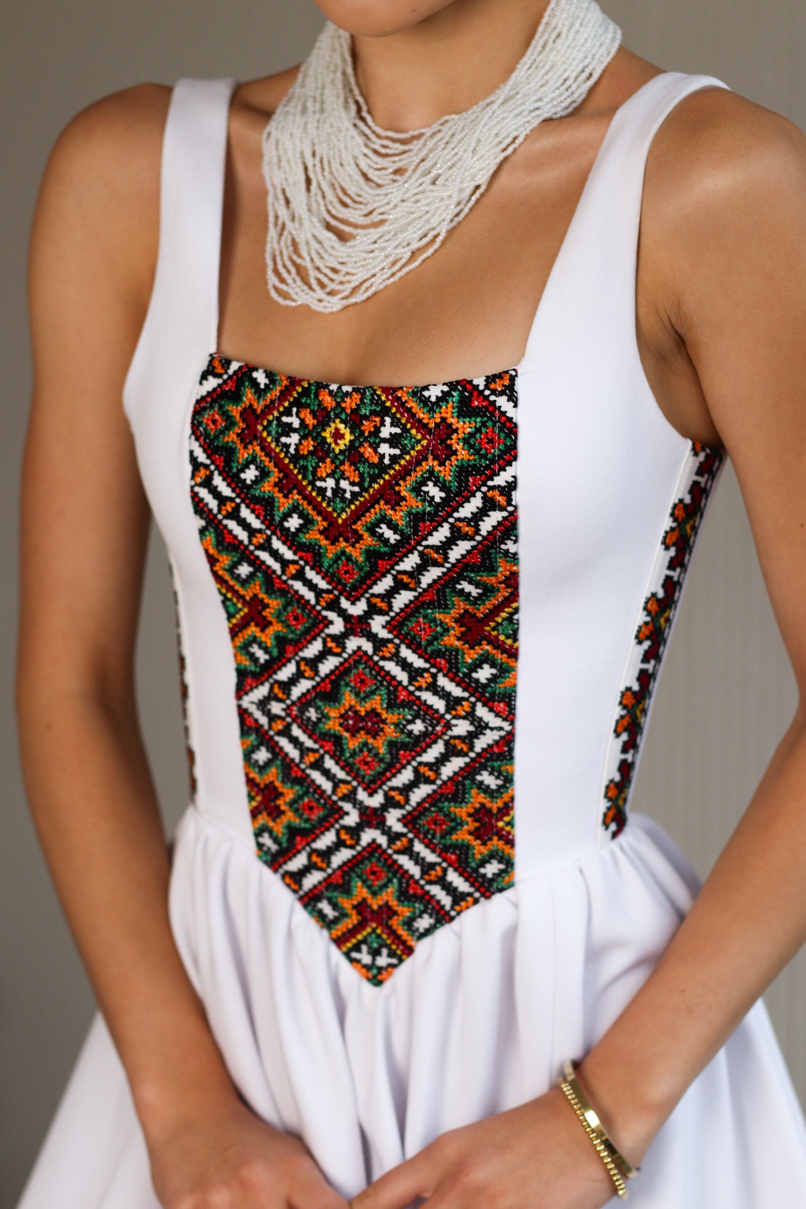 Сукня із ручною вишивкою, яка вишивається у Ворохті, a її візерунок на кожному виробі буде інший та неповторний.